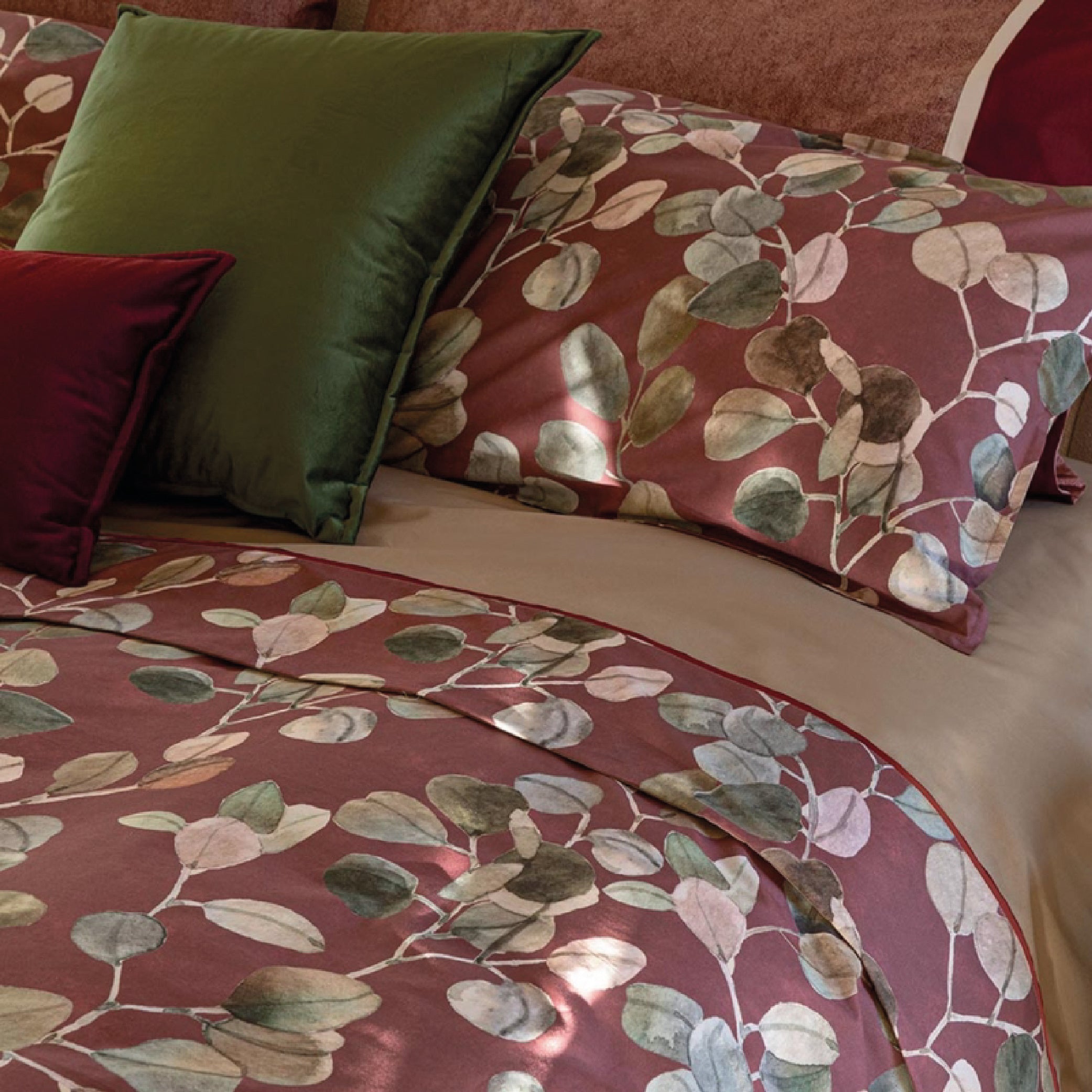 Realizzato in percalle di puro cotone, “Sabi Sabi” dona al tatto una piacevole morbidezza e assicura freschezza e traspirabilità in ogni stagione. La stampa, raffinata e ricca di dettagli, conferisce carattere senza mai rinunciare alla delicatezza.